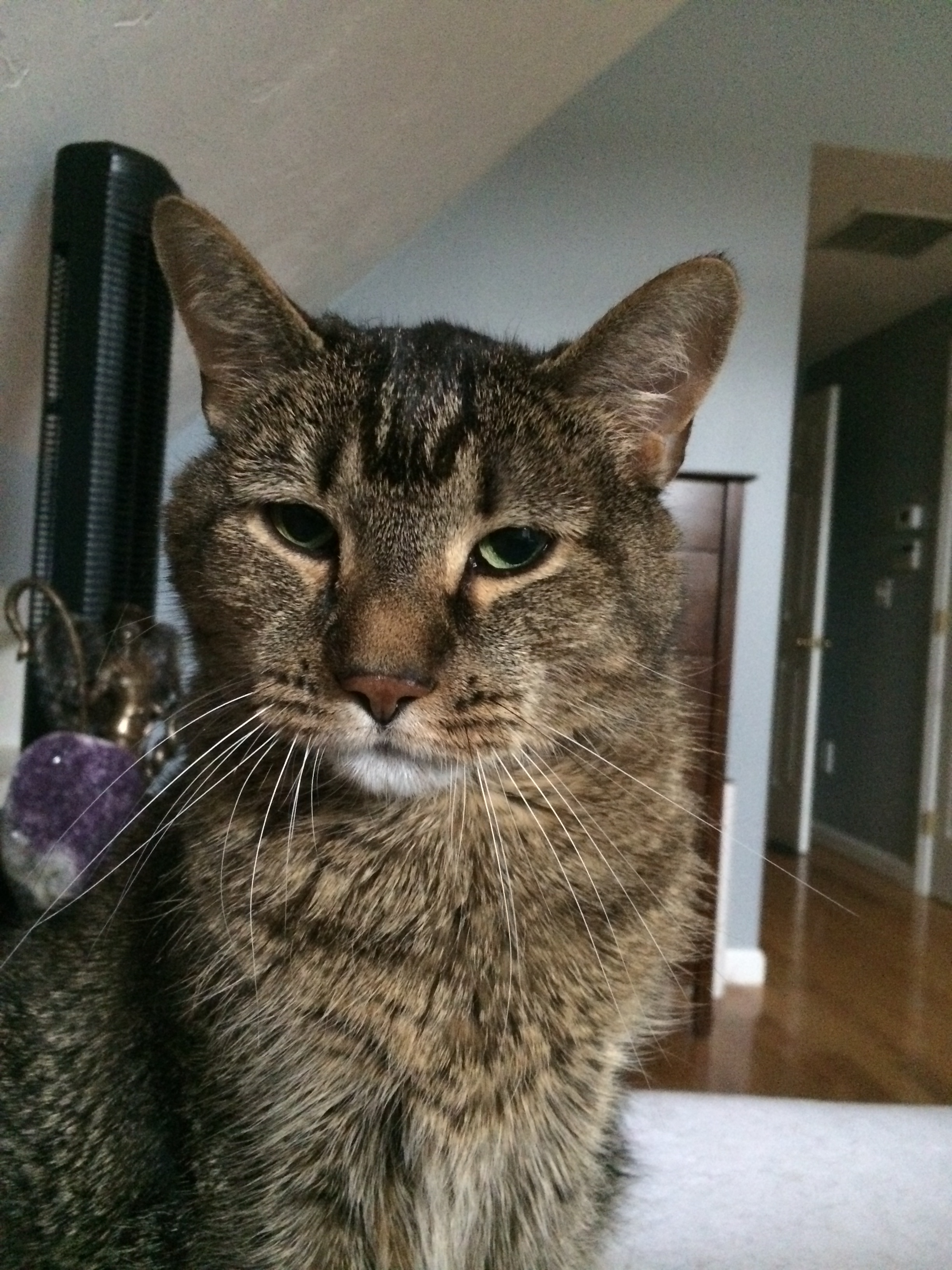 So I’m still on the mend, maybe I’m taxing my body too much with the amount of light I’m exposing myself to. That is a good segway and leads me to the final story of this entry: The Loki Encounter! So this was Tuesday night, after my decision to try to use some of my energy skills on myself to help heal my growing cold and also to aid my liver which has been enflamed due to excess weight.. So I think I took a shower after work and went to bed fairly early. I decided to get buzzed and laid down for what I call my meditation session. I feel my body and energy field with my hands and it is magnified (at least currently) when I’m buzzed. I don’t like to do that, but if I do, it is fairly infrequent and limited. I consider it a mild case of say “training wheels”.. Well I was starting to feel good, and vibey and as usual I focused on moving my hands in an elongated ferris wheel motion while laying down starting near my heart.and sure as shit, I feel like there’s two strong magnets in my hand that repel and pull as they pass over each other.. Once I get to that state, I usually have been using the right to pinpoint a spot like a radar dish or parabolic mirror and the left to harness “energy” to the mirror like the sun and a magnifying glass. Well this time I remembered my first Lisa Gawlas reading of the vortexes and started imagining that I could start a vortex versus using the “beam” I was using.. So I was kind of playing with these and all the while, Loki (my 17 year-old male cat) was pestering me to pet him.. rubbing and butting his head which I did quickly and then focus back to what I was doing. I was just forming the tornado to head into my liver when he did something he never has before, he latched onto my arm and stratched and bite it and then ran off. OUCH. i could feel he scratched to blood (not bite), and I was like “OMG, WTF Loki..” So it immediately got me wondering if he didn’t like what I was doing and he was “protecting” me, (but so violently?) or was he just pissed was ignoring him so much? or maybe he isn’t was influenced by some negative thing to do so, I don’t know.. It really flummoxed me, and still does.. When I jumped up he almost looked evil in his eyes, or at least mischeivous, like when I have to put him in a cat carrier to got to the vet (that’s the only time I’ve seen him pissed and nasty).. So after I washed the multiple scratches and poured a ton of H2O2 (peroxide) on it to make sure I didn’t get cat stratch fever (no lie, it’s real.. I know someone who just has gotten over it for one of her cats), I yelled out in my room to the heavens, “What the heck am I supposed to make of that? Did you ask him to do that? Was I doing something wrong?” But I was feeling great, and light and it felt good doing what I was doing.. Well, I’m no closer to an answer. I’ve been waiting to get some inspiration on it, but haven’t got it. If I had to go with my gut, is that maybe it was too much for him and he reacted. I haven’t tried that vortex “method” again since, but maybe I will to see if something repeats. A mystery (for now), and I rack it into the realm of this blog. I did lock him out the rest of the night, fearing a repeat attack.. Man he wanted back into the room, meowing and stratching the door, but I didn’t let him in. I’m not mad at him, but my trust is broken, so I’m not overly affectionate or pet him tons until I know he’s back to normal. I always wondered about him and Penny (my other cat – female) they aren’t close, but Loki stalks her sometimes and violently attachs.. She’s a sweet heart and other than being REALLY annoying about getting fed, she’s SUPER lovey (when she knows you) and she absolutely loved Christophe and ADORES Stetson.. but any other males, poof, she’s gone. Weird. But Penny really looks at you like a person, where Loki has always been more distance and aloof. Maybe Loki (who I favor) isn’t as wholesome as I think. .I don’t know, I’m still processing the incident and maybe will need to just chalk it up to a fluke or something. I’ll definitely readdress in a later blog if something comes to me, or another event takes place.